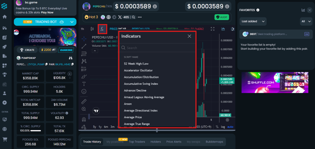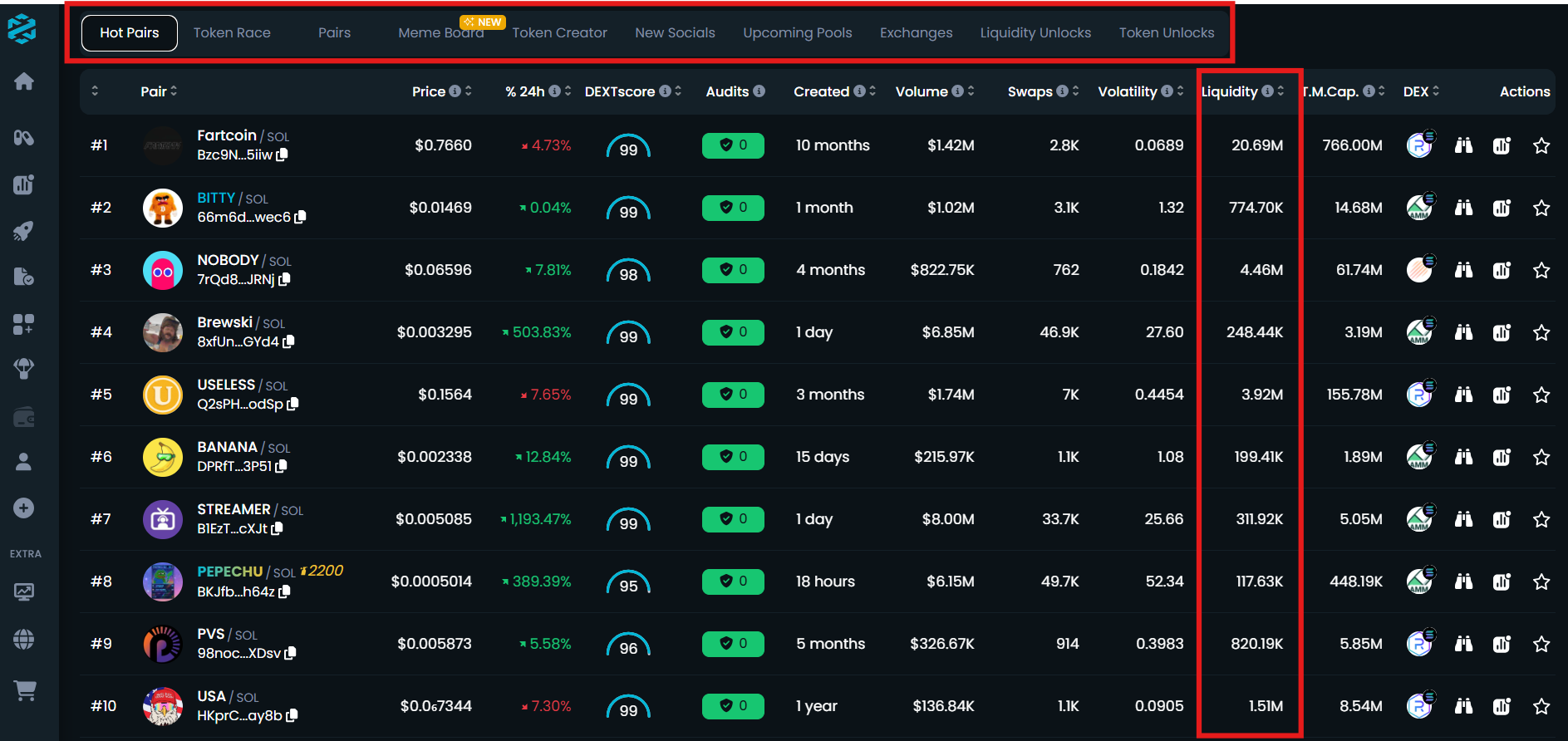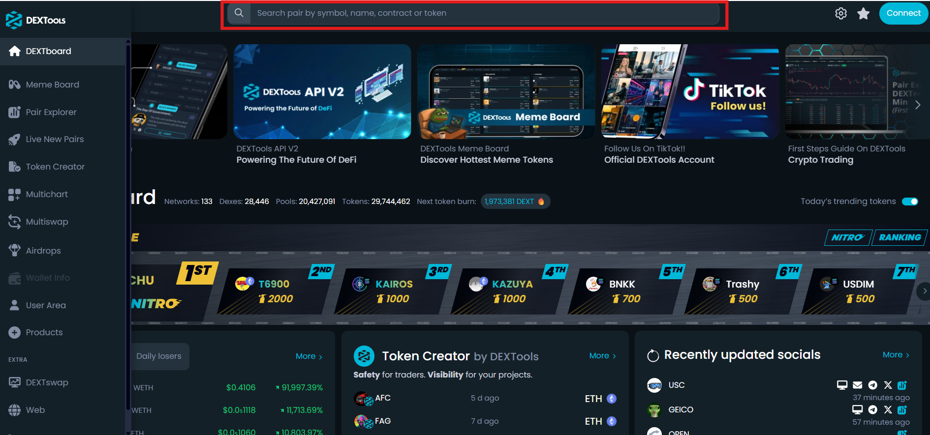On the homepage, you’ll see sections like Trending Tokens, Most Viewed Pairs, and New Pairs. This helps you quickly identify what the market is currently paying attention to.