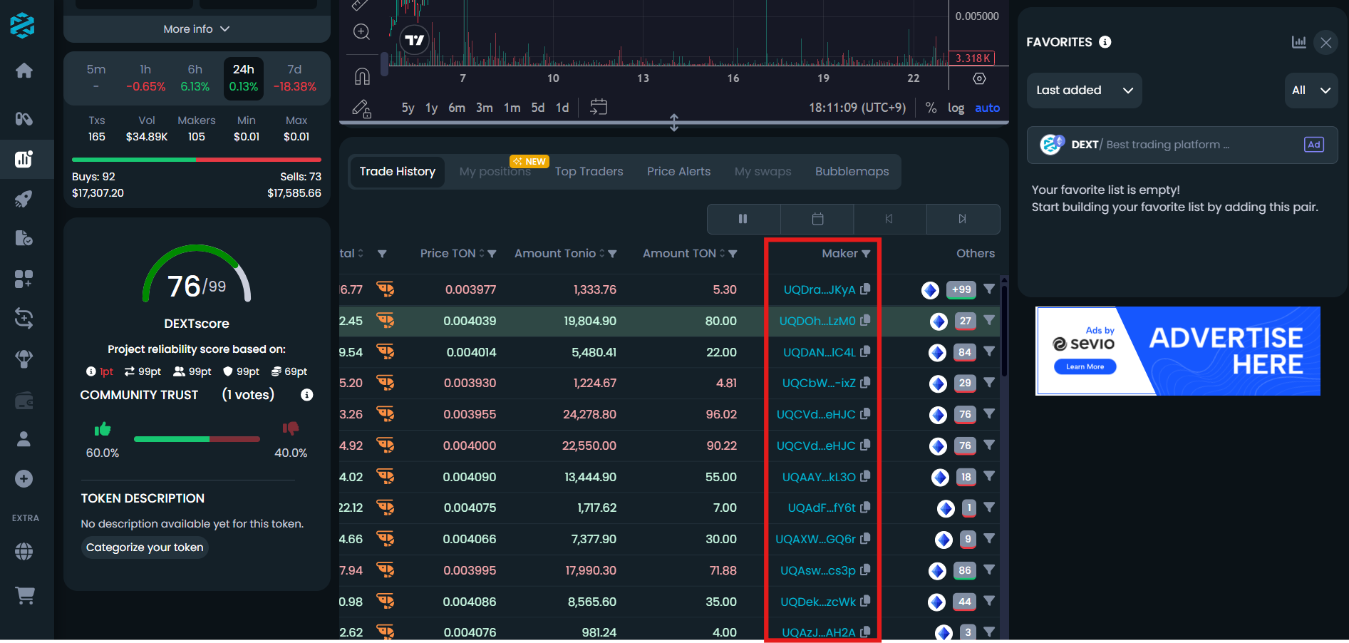 By entering any wallet address, you can view holdings and transaction history. This feature allows you to track whale activity or monitor developer wallets to see if they’re dumping tokens.