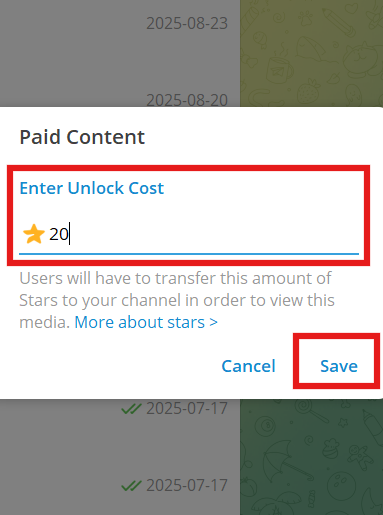 Example: A travel channel shares a few free photos, but “full album access” requires 20 Stars.